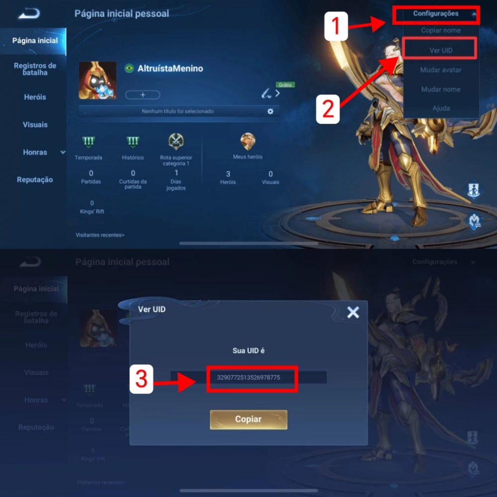 Untuk menemukan ID Anda, ketuk pada ikon karakter. User ID tercantum di bawah nama karakter Anda.